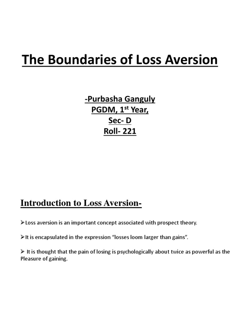 Loss Aversion - Loss Aversion Defining Loss Aversion: The theory of ...