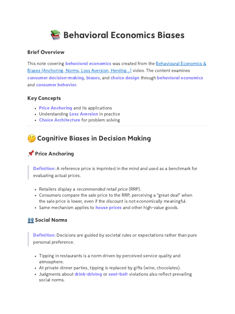 Behavioural Economics & Biases (Anchoring, Norms, Loss Aversion ...