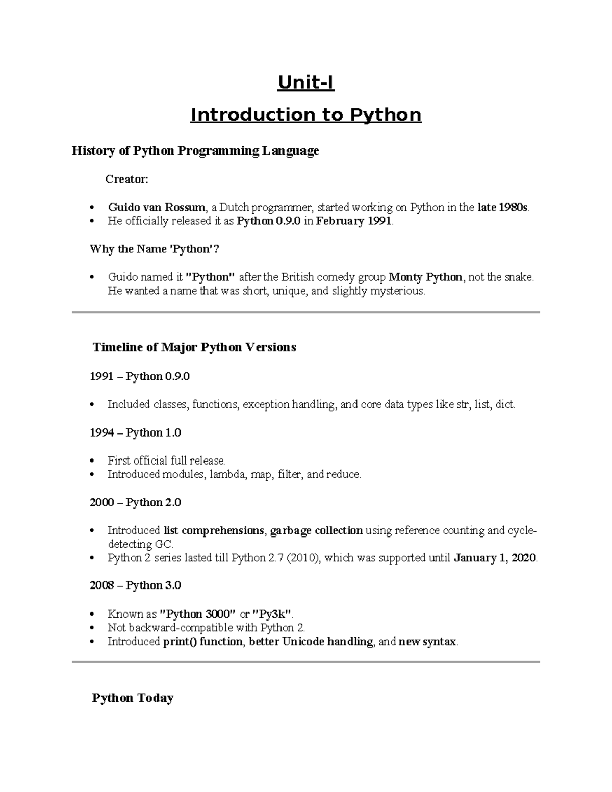 Introduction to Python programming: History and basics (BTECH-101 ...