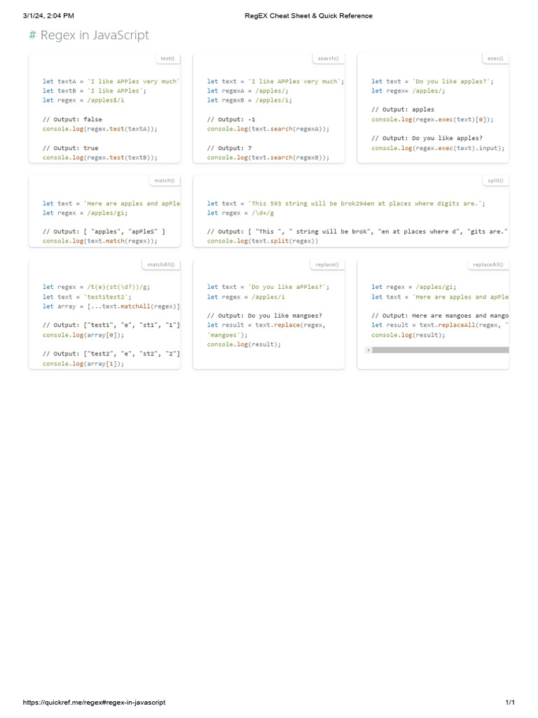 RegEX Cheat Sheet & Quick Reference | PDF | Computer Programming ...