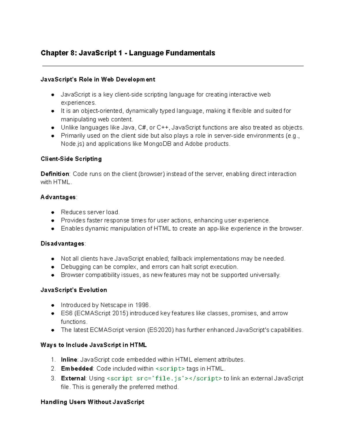 CSE 3-2 Final Exam Unit 2 Notes: JavaScript Fundamentals and Uses - Studocu