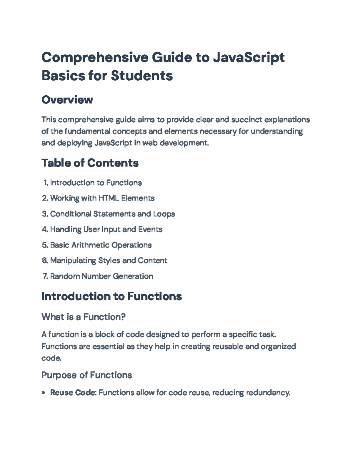 Comprehensive JavaScript Basics Guide for Students: Key Concepts - Studocu