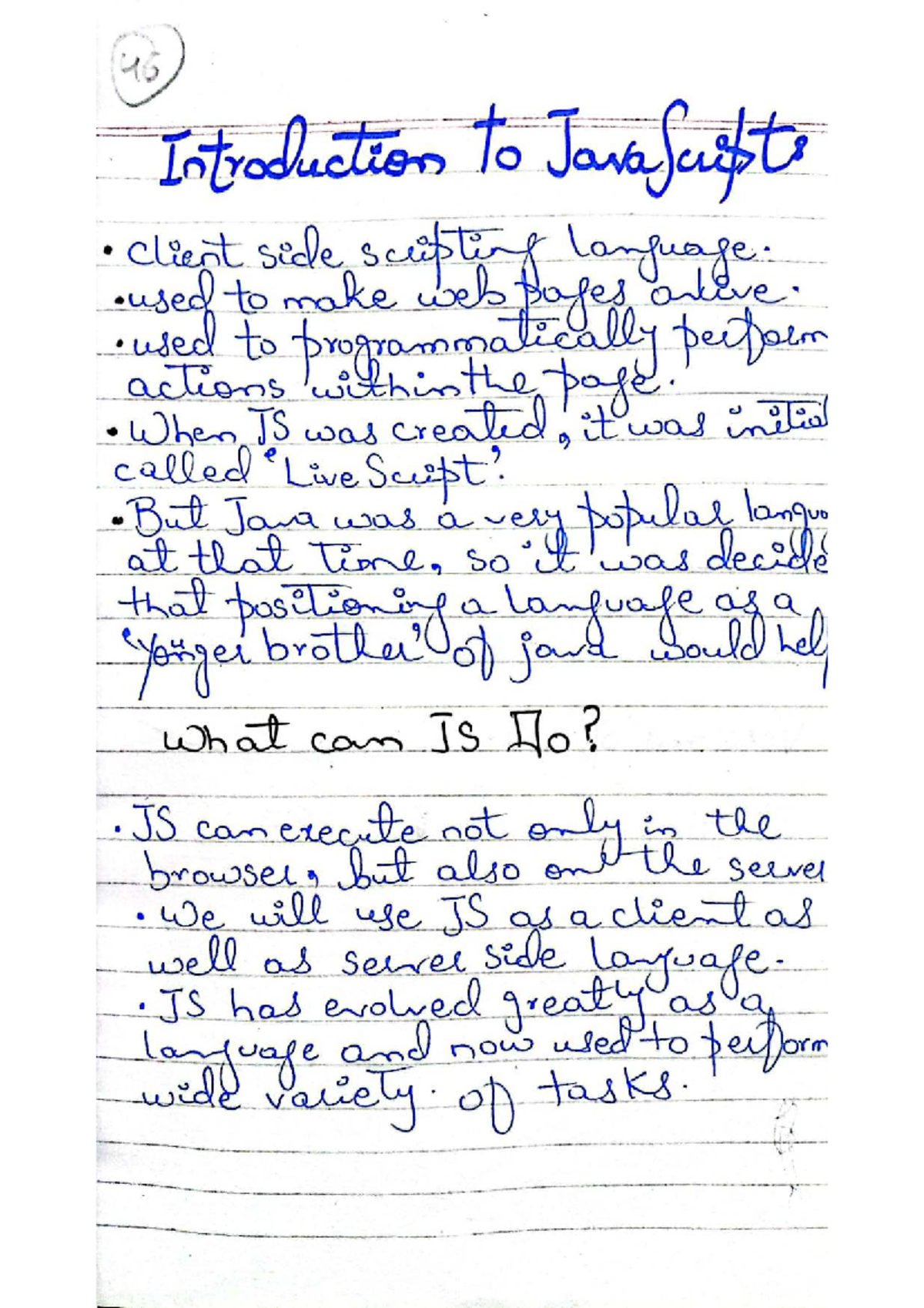 SOLUTION: Handwritten javascript notes for beginners - Studypool