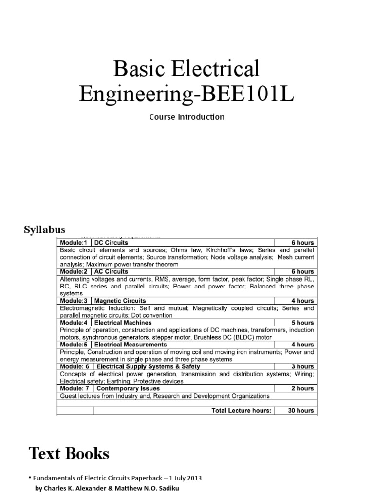 Basic Electrical Engineering-BEE101L: Course Introduction | PDF