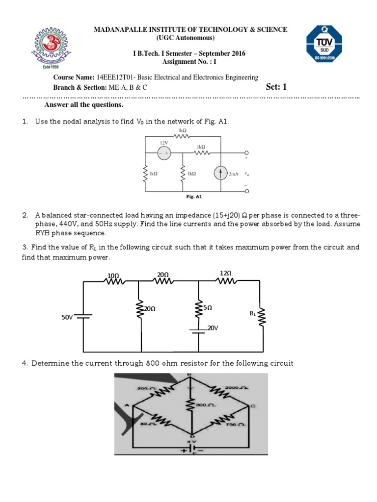 Basic Electrical Engineering Assignment: Circuit Analysis and | Course Hero