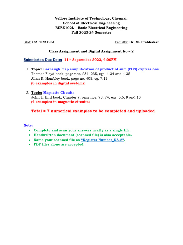 VIT Chennai BEEE102L Assignment 2 | PDF | Technology & Engineering
