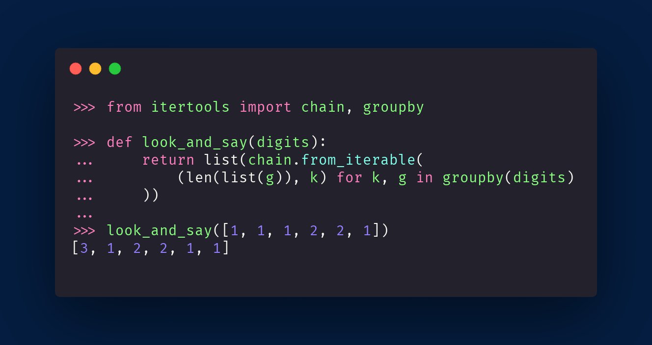Every Python π programmer should learn about `itertools`. It's a great ...