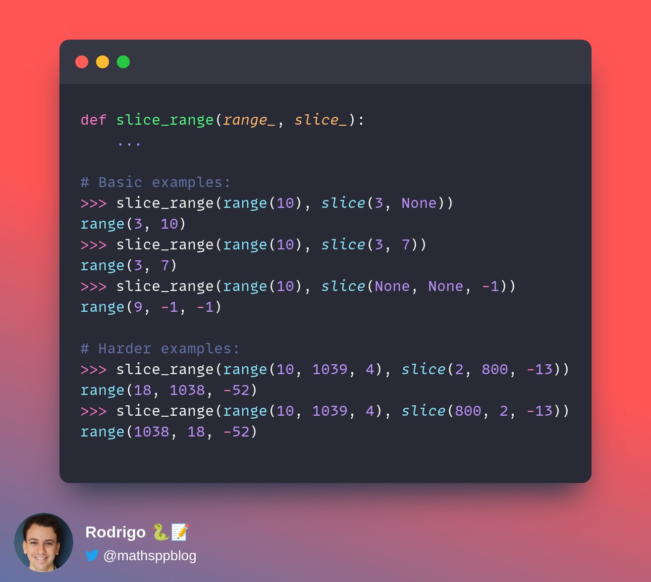 Rodrigo ππ on Twitter: "Here is some Python π code with a bunch of ...