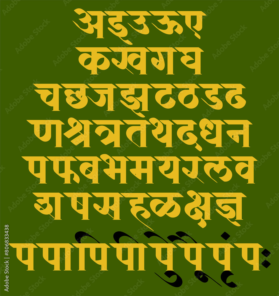 Hindi alphabets, typeface, or Handmade typography in vector form. Hindi ...
