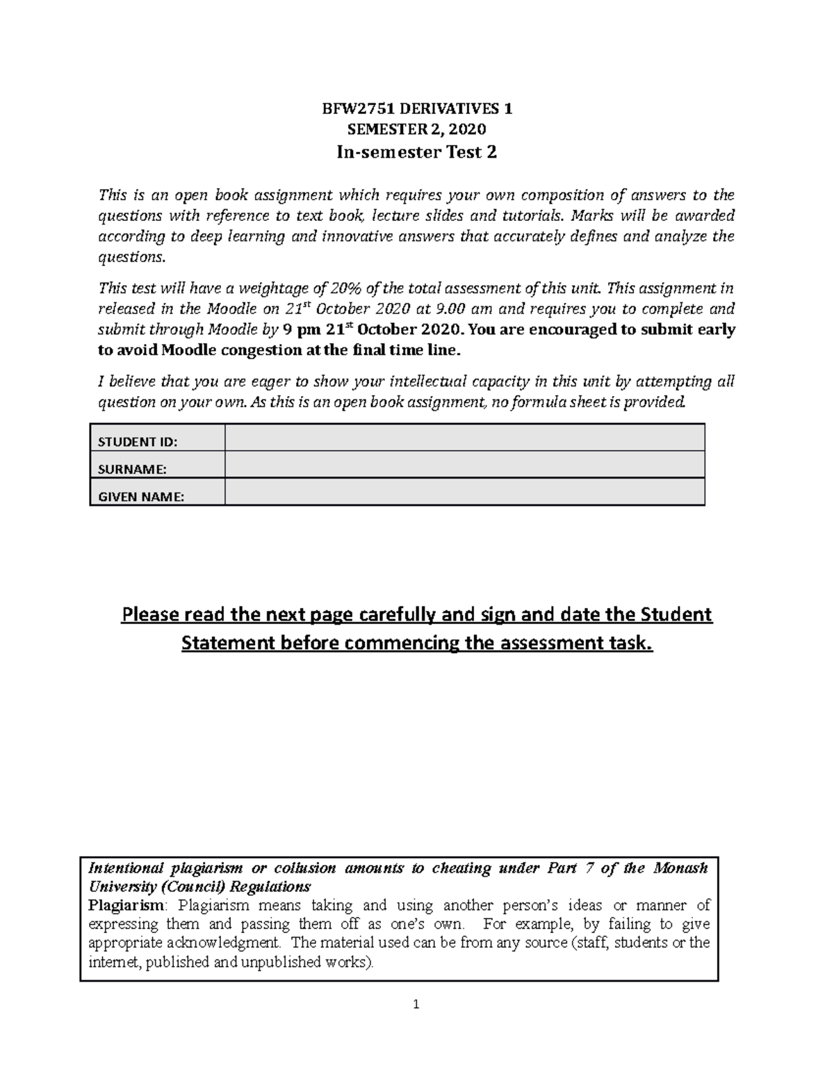 In semester TEST 2 - 2020 S2 - BFW2751 DERIVATIVES 1 SEMESTER 2, 2020 ...