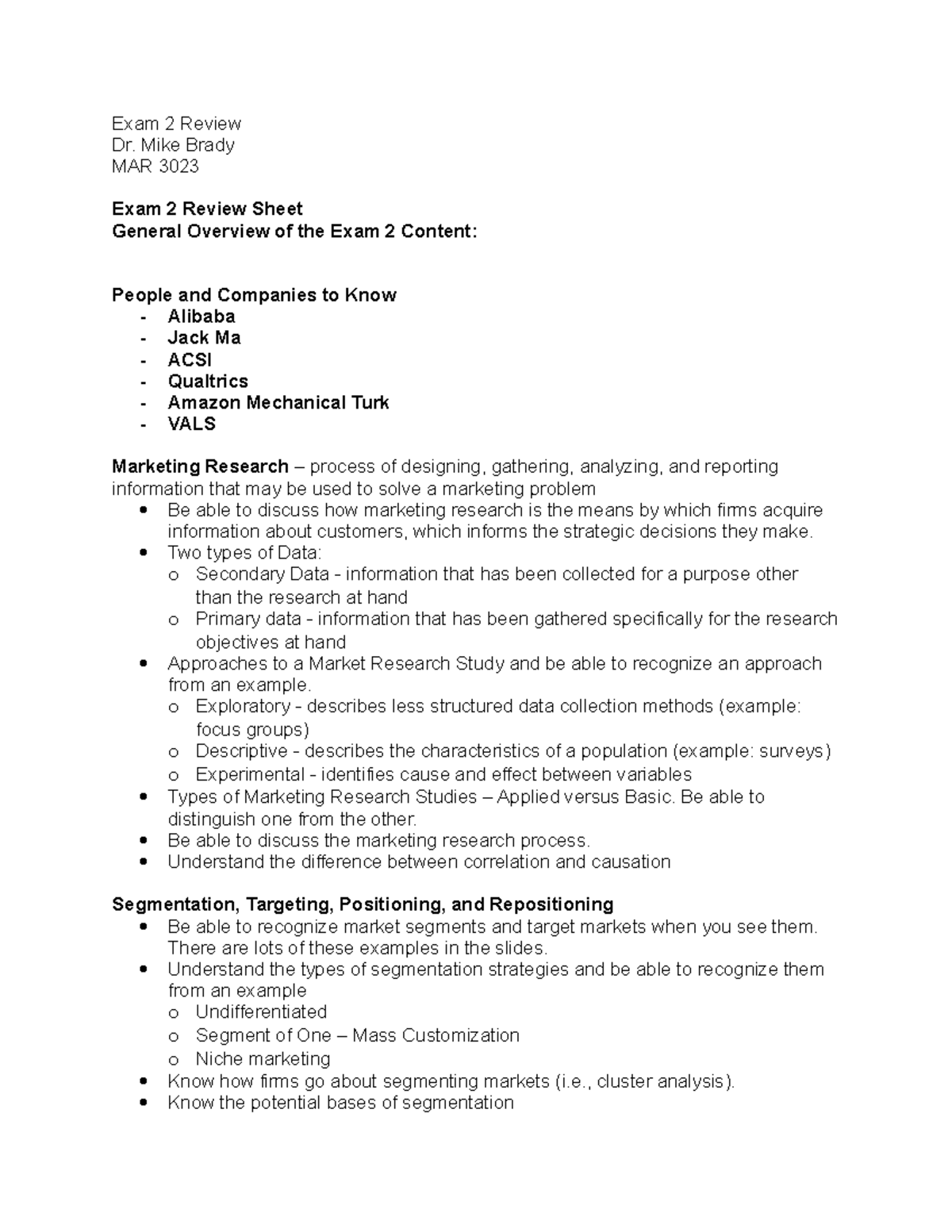 Exam 2 Review Content - Exam 2 Review Dr. Mike Brady MAR 3023 Exam 2 ...