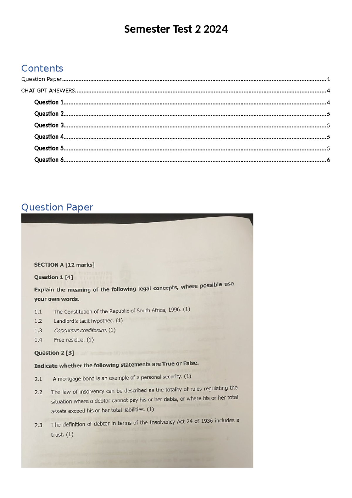 Semester Test 2 2024 - lecture notes - Contents - Semester Test ...