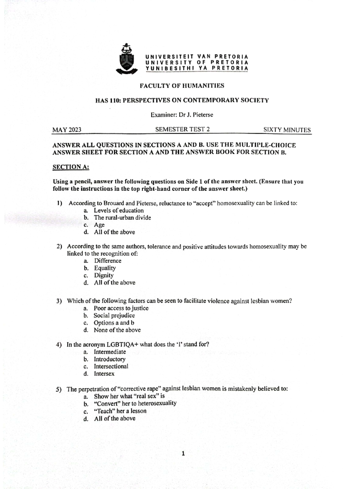 HAS semester test 2 2023 - HAS 110 - Studocu