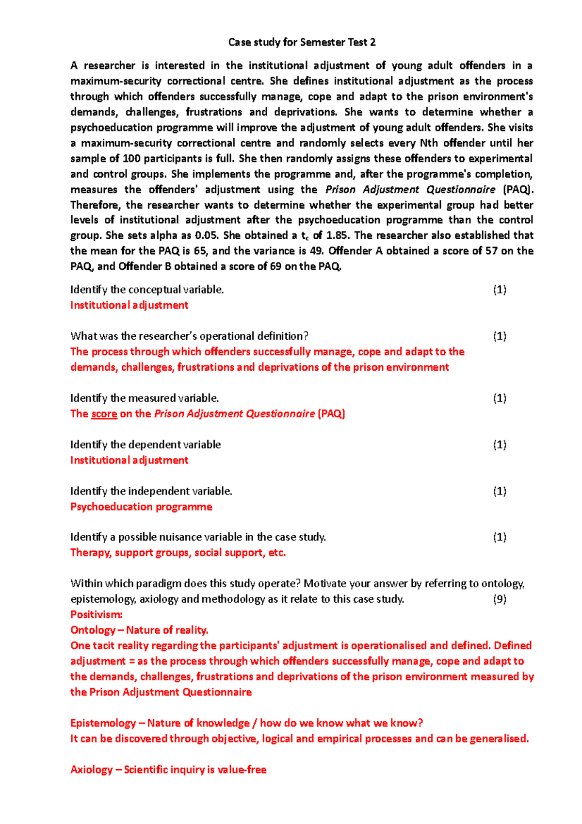 Case study for Semester Test 2 - Answers - Case study for Semester Test ...