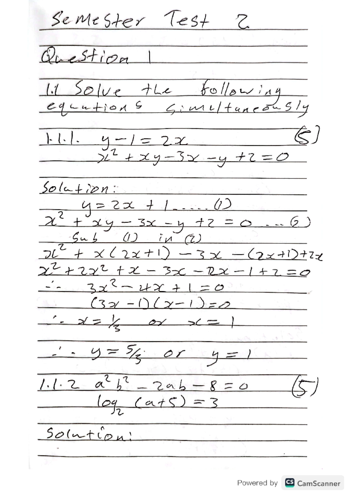 Semester Test 2 Solutions - Semester Test 2 Solutions: 2024 SOLUTION (1 ...