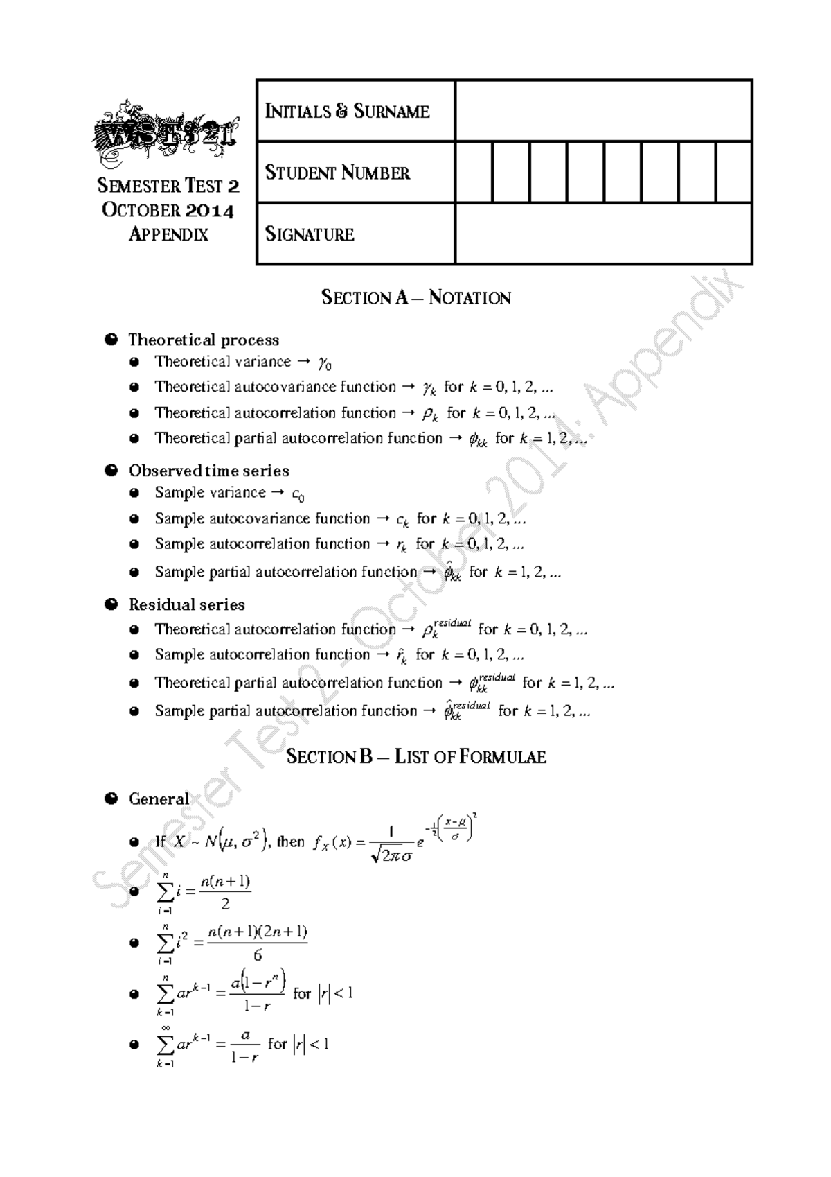 Semestertest 2-2014 appendix - WST SEMESTER TEST 2 OCTOBER 2014 ...