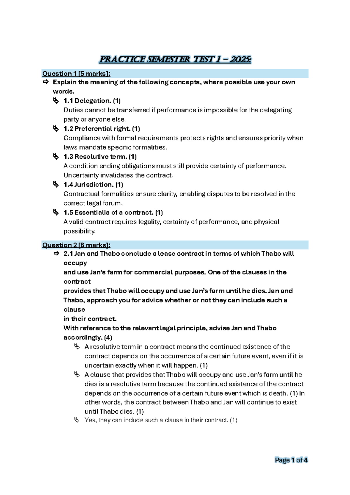 Practice Semester Test 1 - Legal Concepts and Contract Analysis 2025 ...