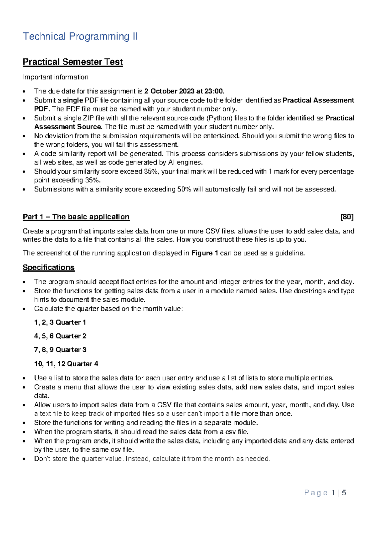 Technical Programming II: Practical Semester Test Guidelines - Studocu