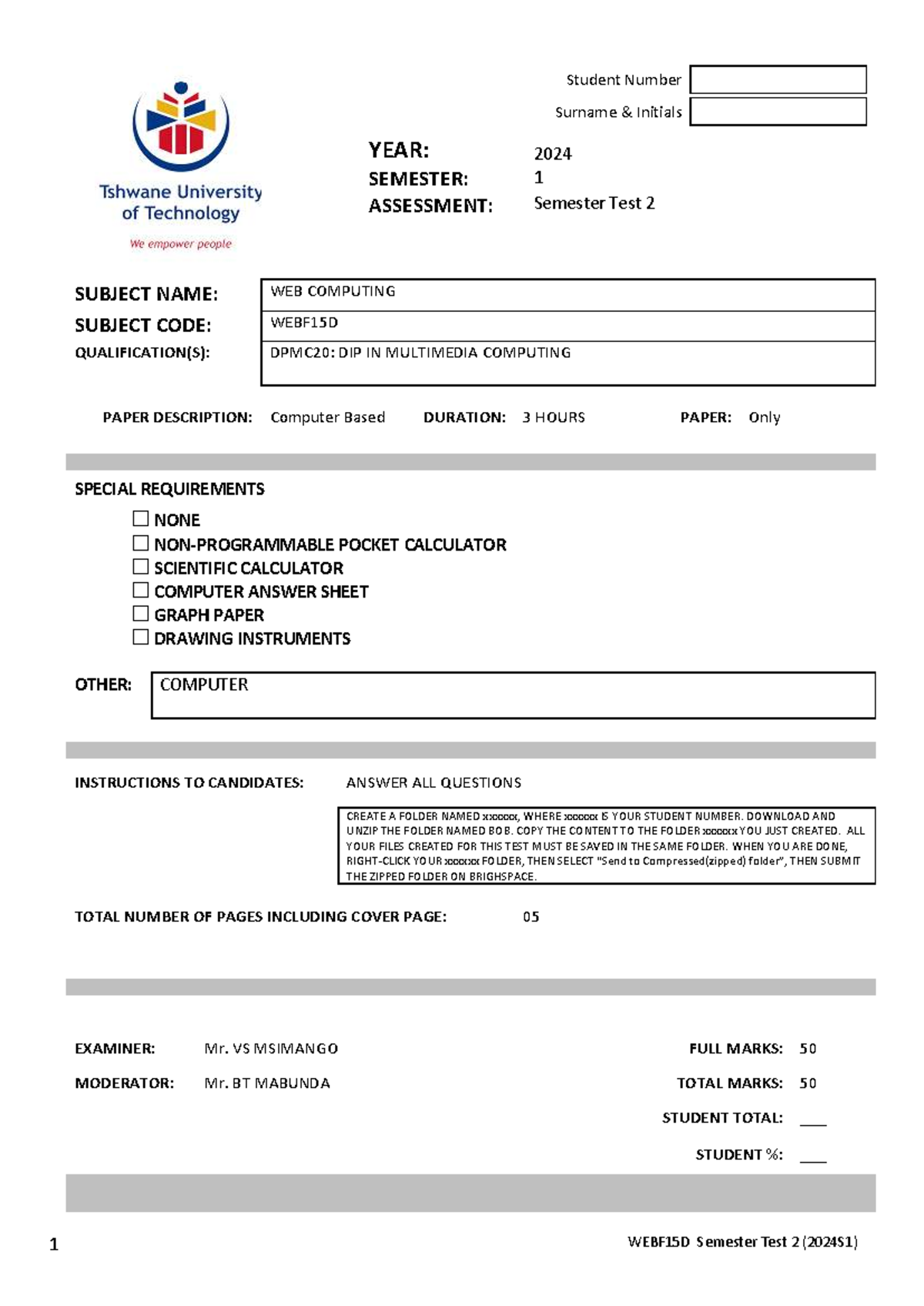 WEBF15D Semester Test 2 (2024S1) - Web Computing Assessment - Studocu