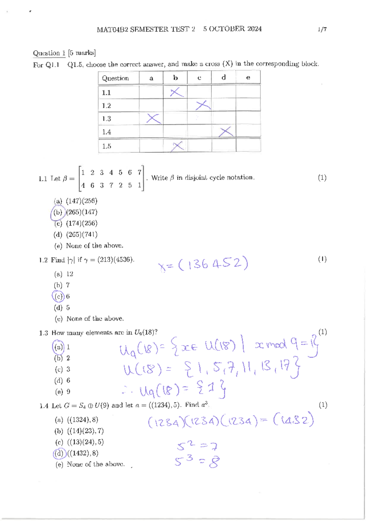 MAT04B2 SEMESTER TEST 2 MEMO - 5 OCTOBER 2024 - Studocu