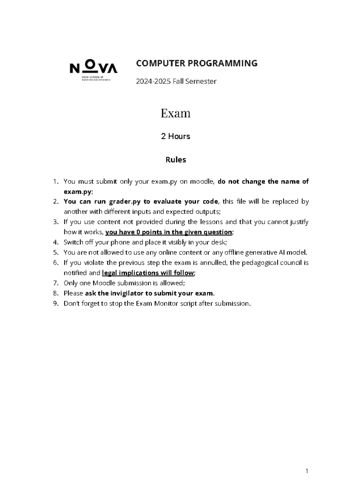 COMPUTER PROGRAMMING Fall Semester Exam 2: Key Rules & Questions - Studocu