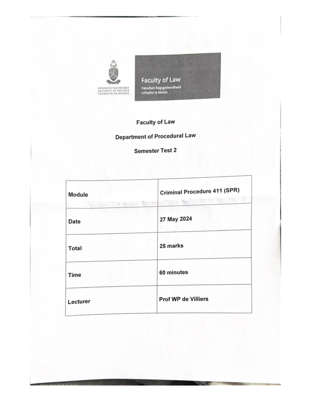 SPR411 2024 Semester Test 2 Study Guide - Studocu