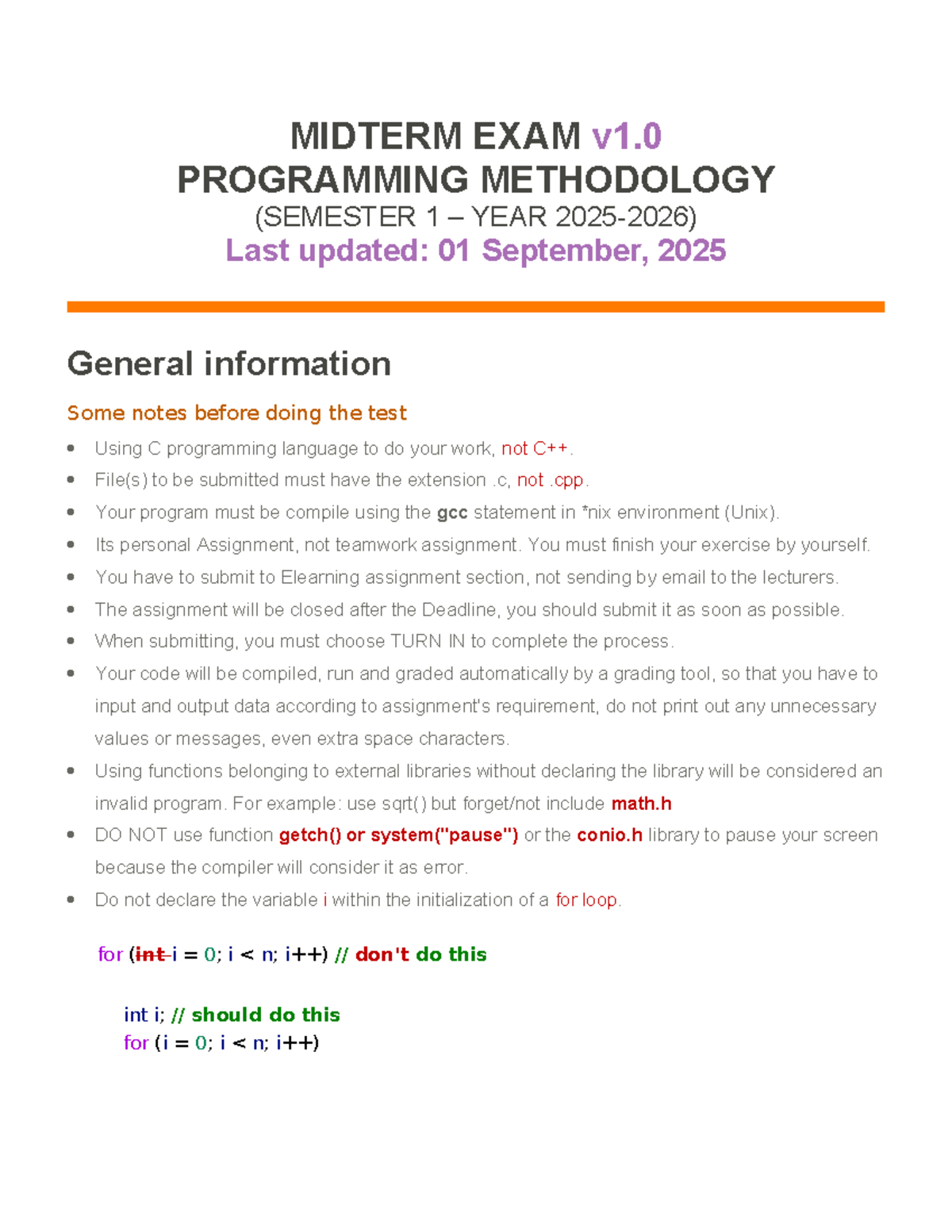 MIDTERM EXAM NOTES: PROGRAMMING METHODOLOGY (SEM 1, 2025) - Studocu