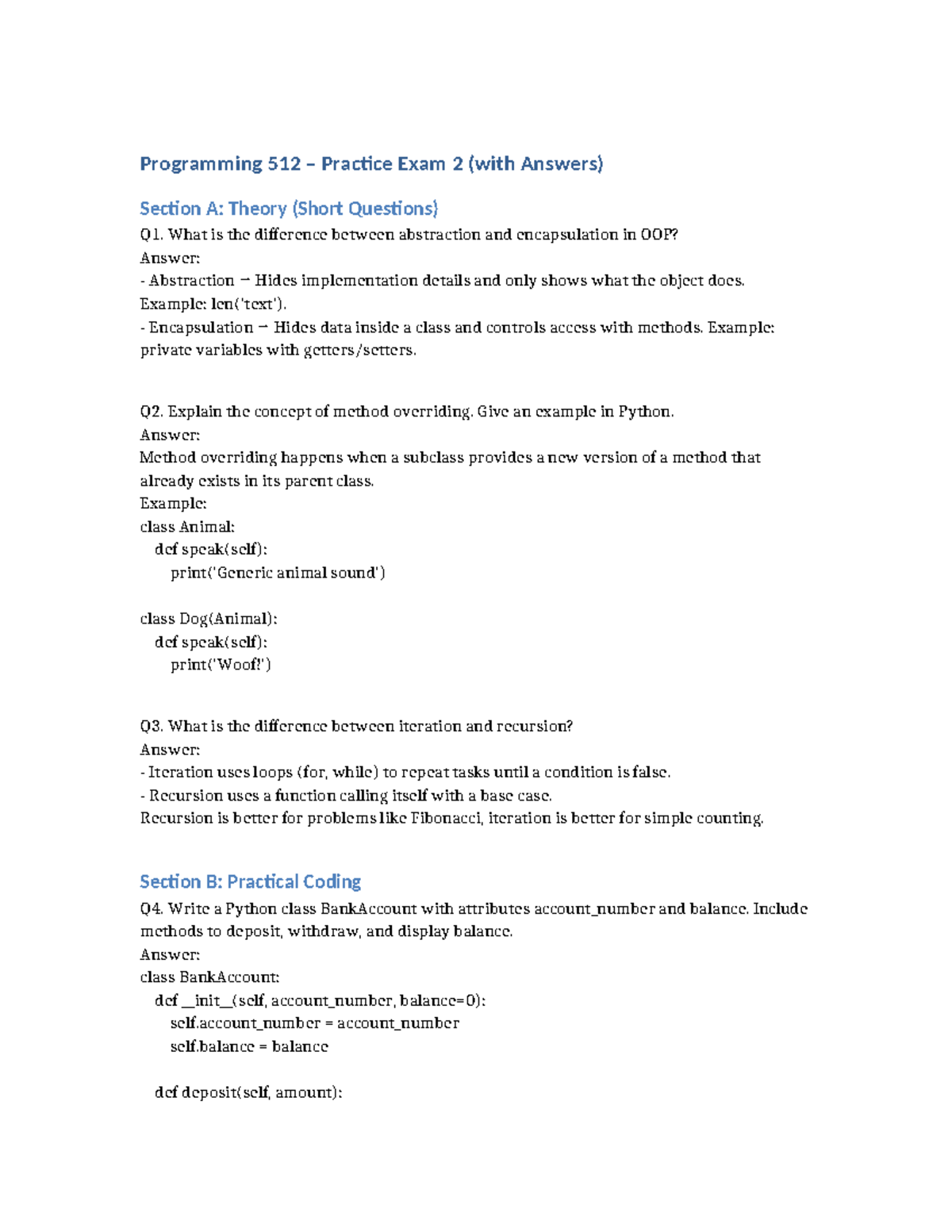Programming 512 Practice Exam 2: Theory & Coding Questions - Studocu