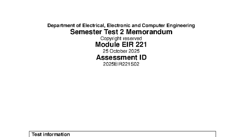 EIR 221 Semester Test 2 Memorandum - October 2025 - Studocu