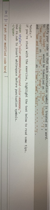 Solved Python: Modify your code so that each punctuation | Chegg.com