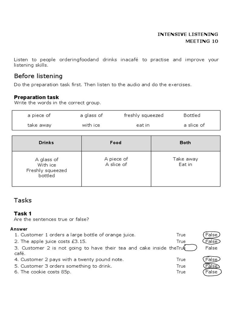 Meeting 10 Intensive Listening | PDF | Drink | Juice