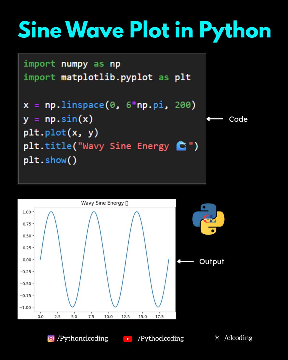 Sine Wave Plot in Python — Python Coding (CLCODING) - Buymeacoffee