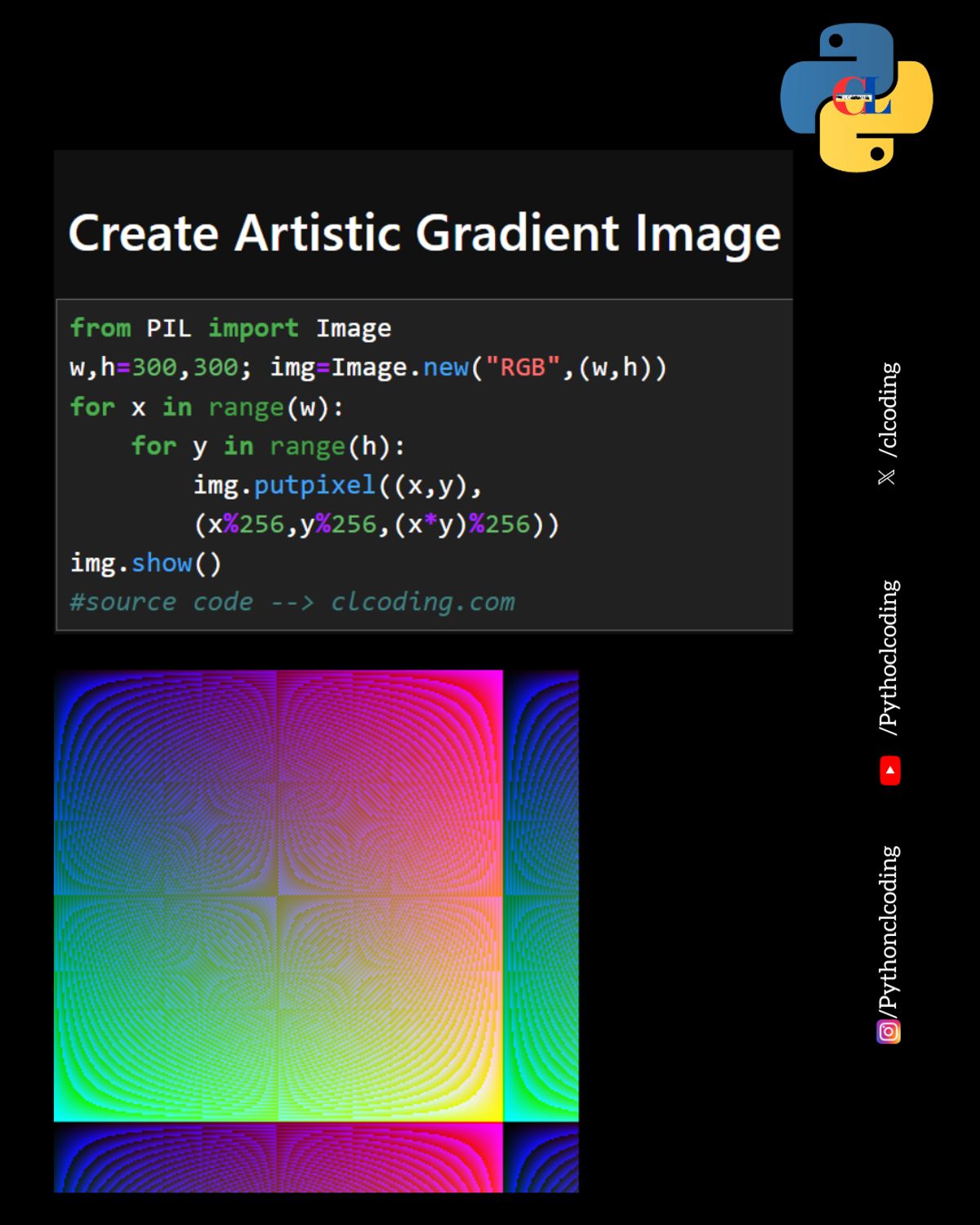 Create Artistic Gradient Image — Python Coding (CLCODING) - Buymeacoffee