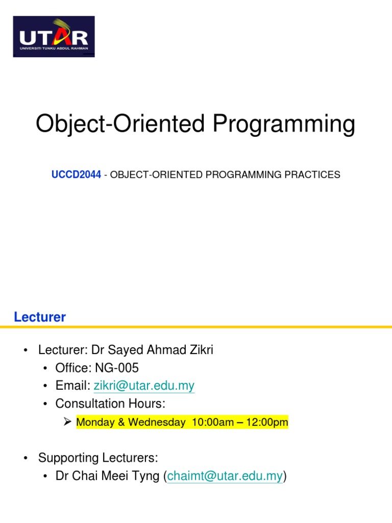 Based on this image's title: “01CT0105-OOP - Object-Oriented Programming Overview and Techniques ...”