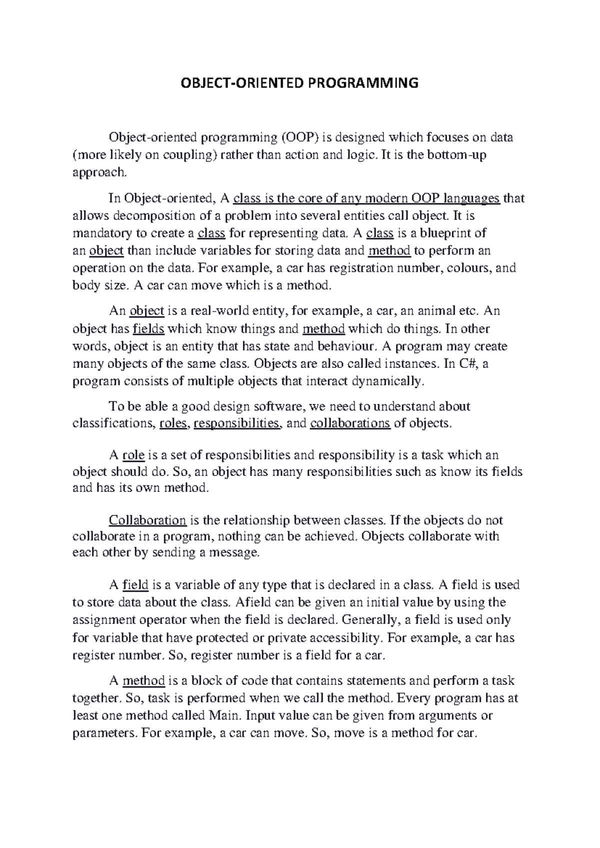 Introduction to object oriented programming concepts | DOCX