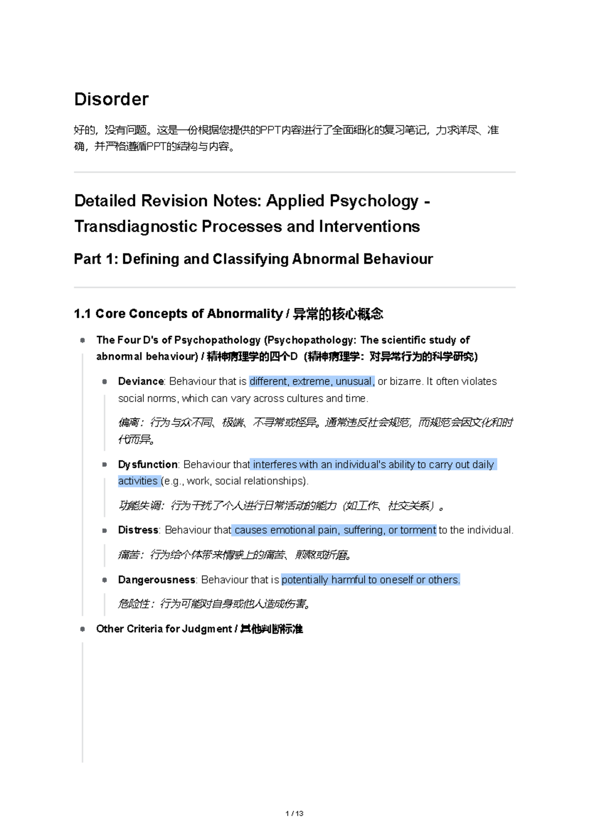 Psychopathology Revision Notes: Defining Abnormality and Anxiety ...