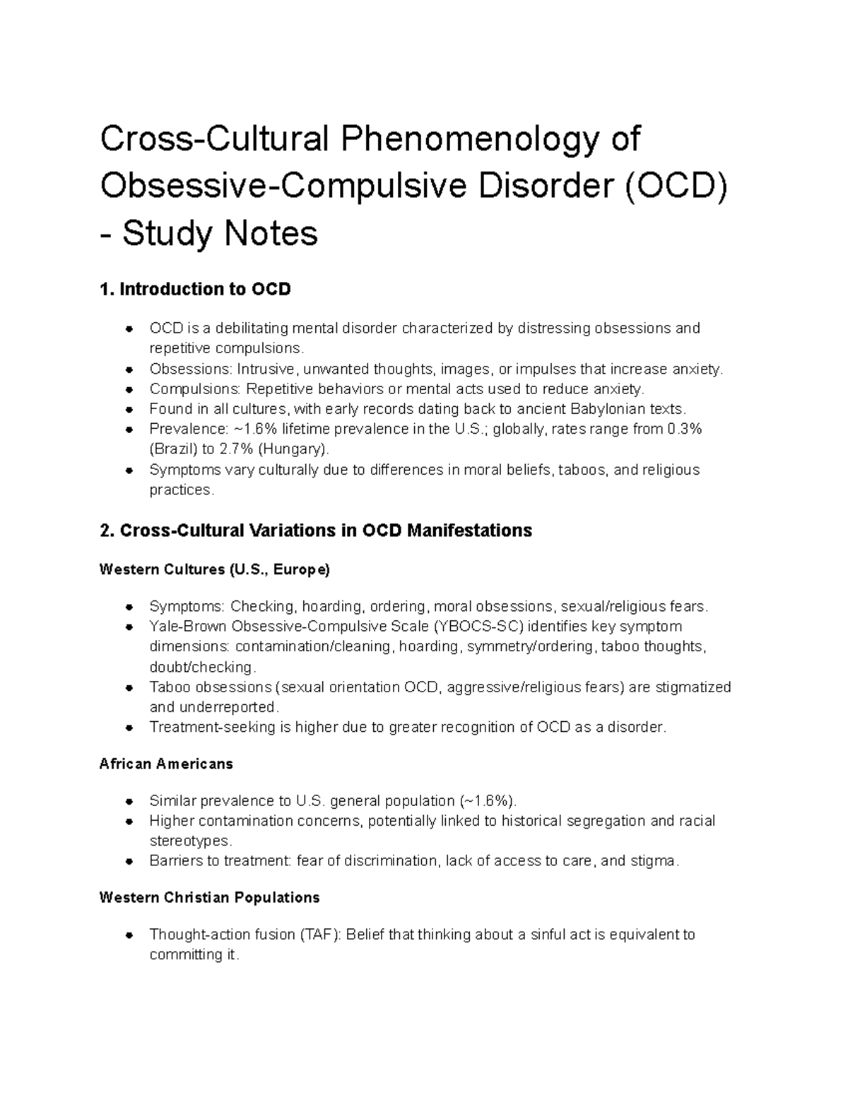 NR 547 Wk 2 Notes: Understanding Anxiety Disorders and OCD - Studocu