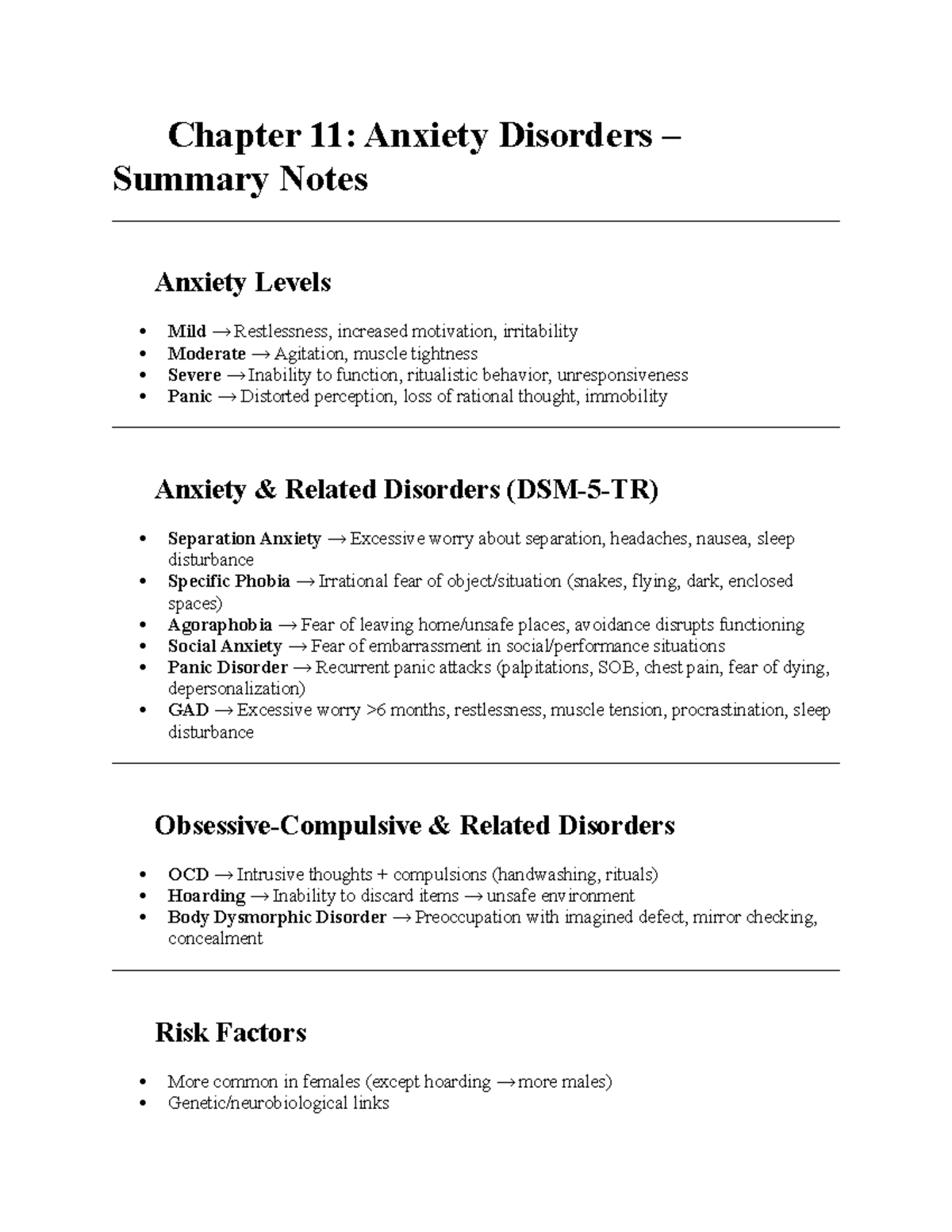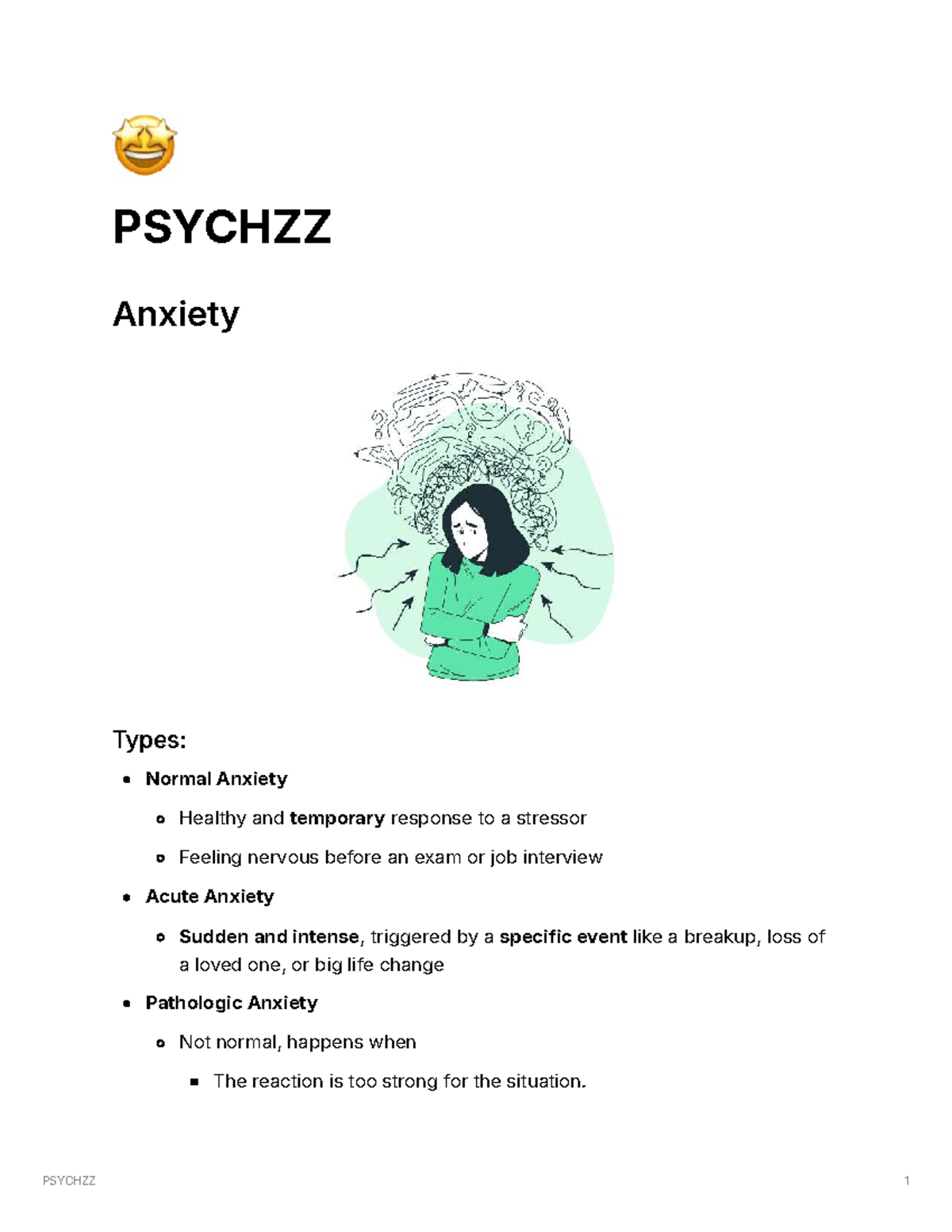 Anxiety - Comprehensive Notes on Types, Symptoms, and Treatments - Studocu