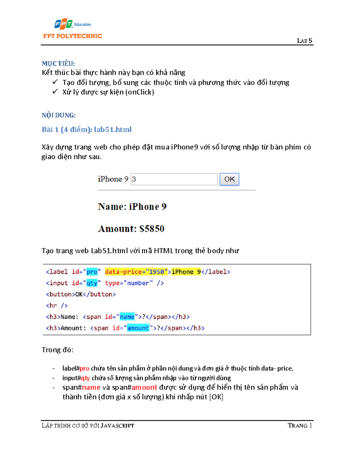 Lab 5: Xây Dựng Trang Web với JavaScript - WEB1043 - Studocu