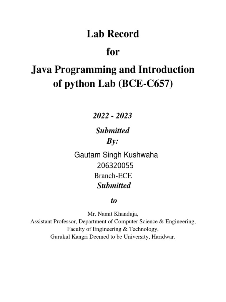 Bcsl-043 - JAVA lab - Java Programming Lab SECTION 1: JAVA PROGRAMMING ...