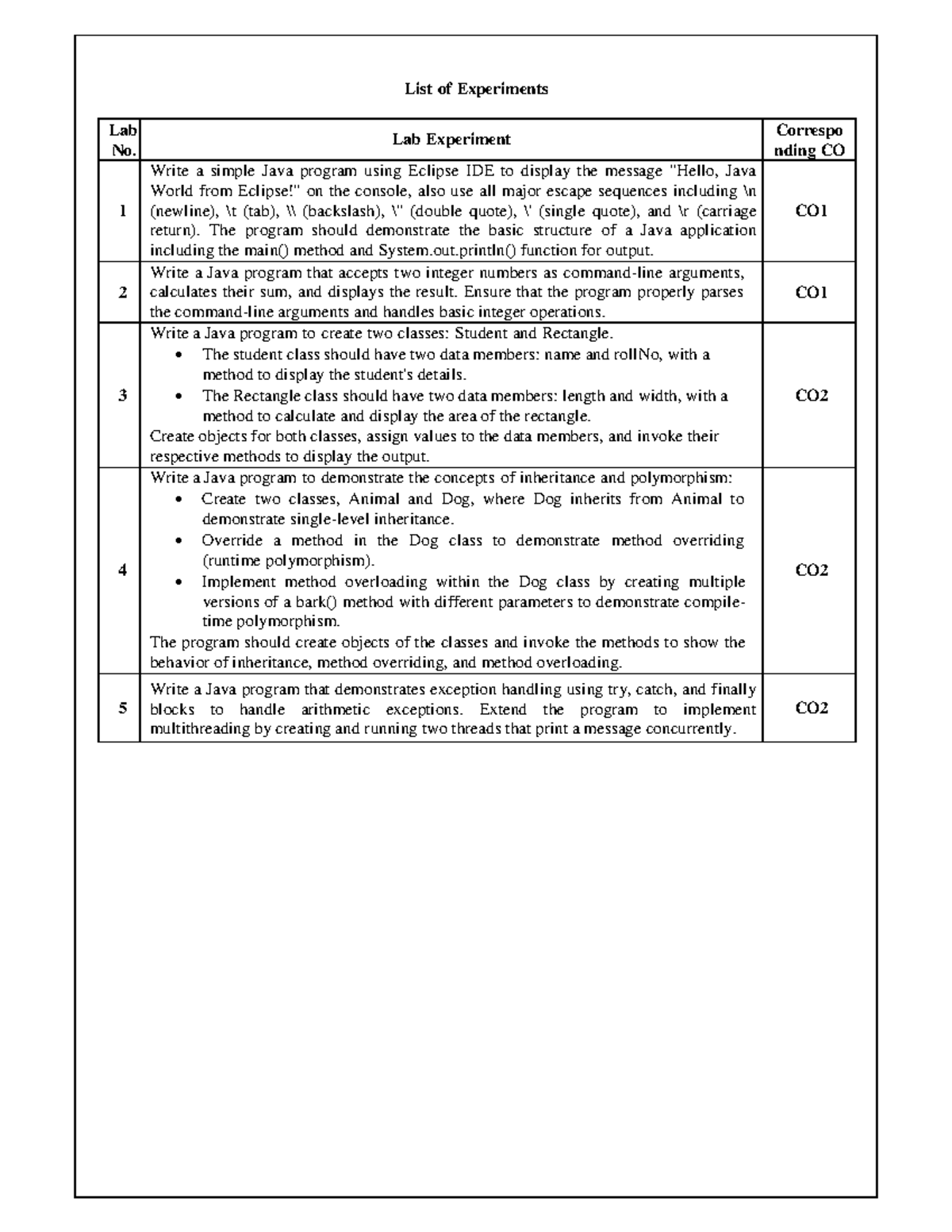 Java lab manual complete - CS408PC: JAVA PROGRAMMING LAB Course ...