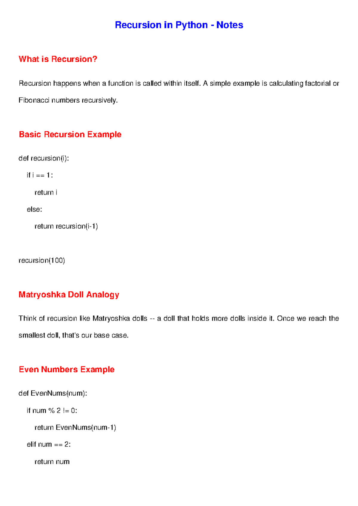 Recursion in Python: Key Concepts and Examples (CS101 Notes) - Studocu