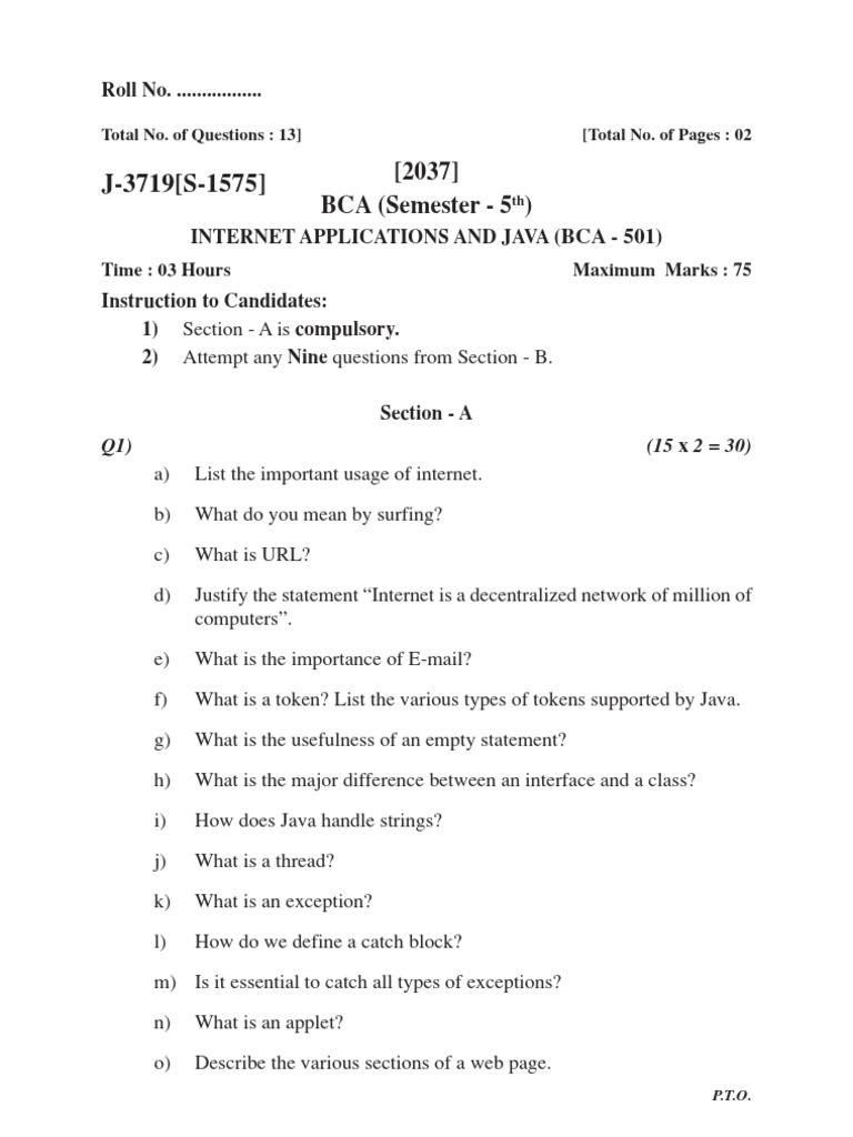 Gndu BCA 5th Semester Java Programming Language Question Paper || BCA ...