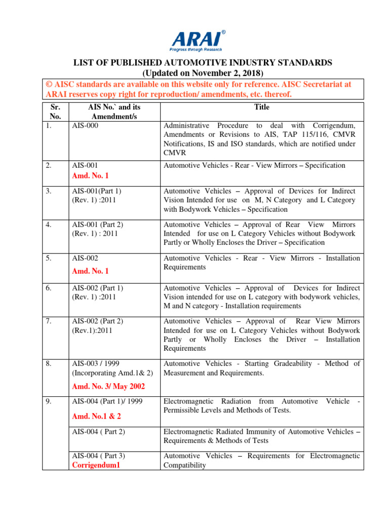 Automotive Industry Standards List | PDF | Vehicles | Truck