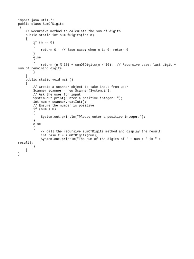 Find Sum of Digits of a Number using Recursion - Java Code