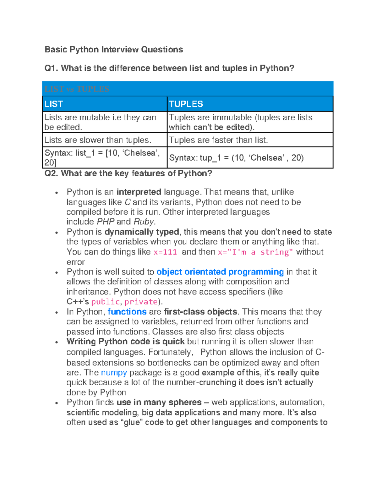 Python Intervieew Questions - What is the difference between list and ...