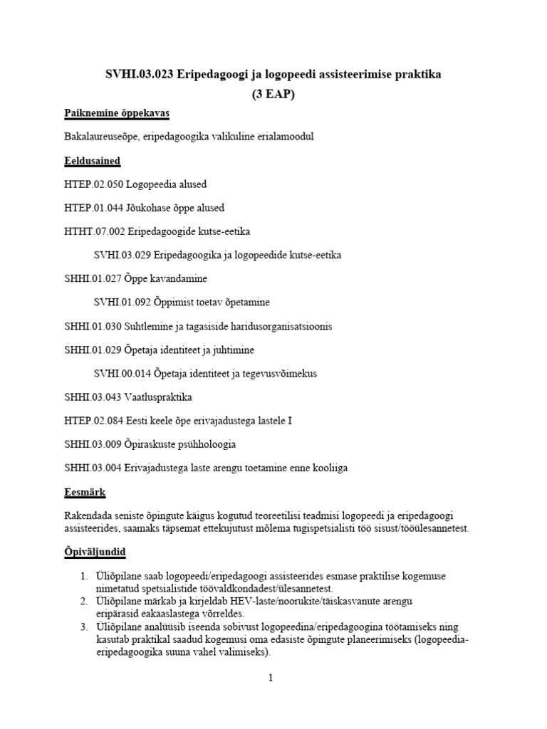 Eripedagoogi Ja Logopeedi Assisteerimise Praktika_JUHEND_2024 (3) | PDF