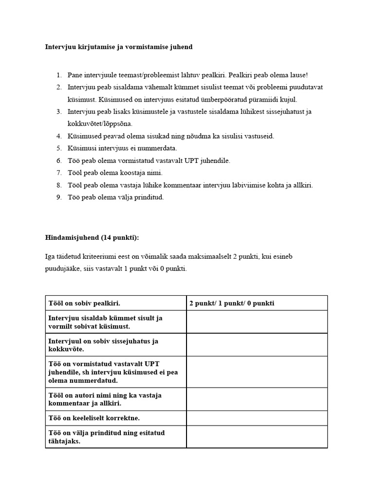 Intervjuu Juhend | PDF