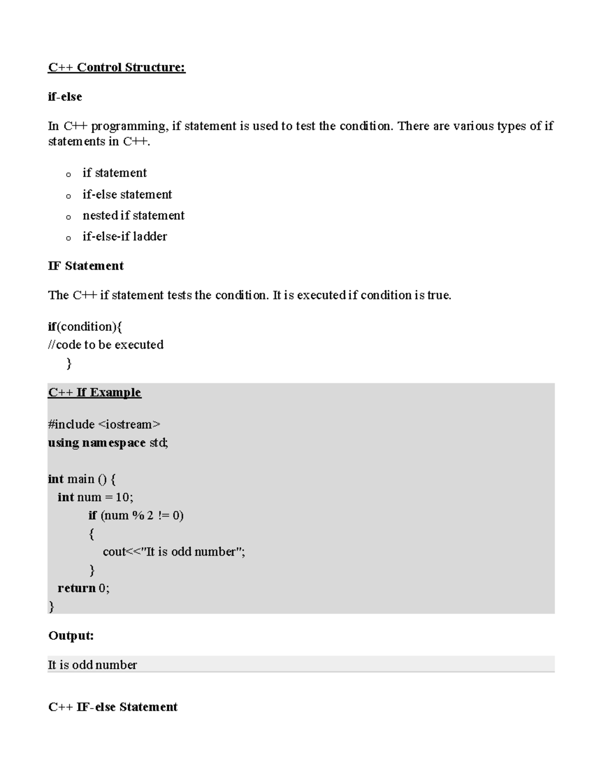 351CP14 UNIT II - C++ notes - C++ Control Structure: if-else In C++ ...