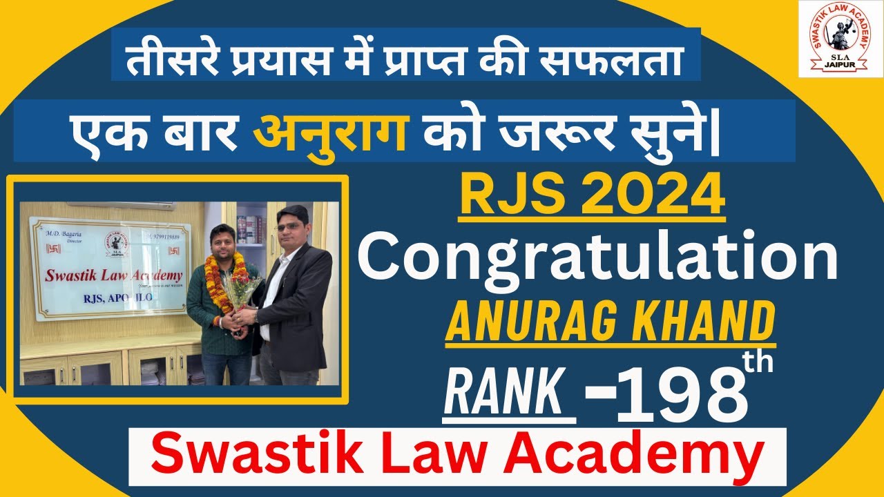 ๐ Congratulations to Anurag Khand for Securing Rank 198 in RJS 2024! ๐ ...